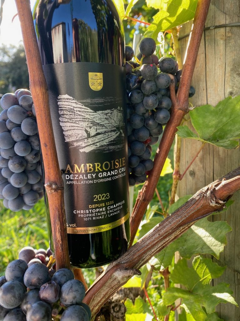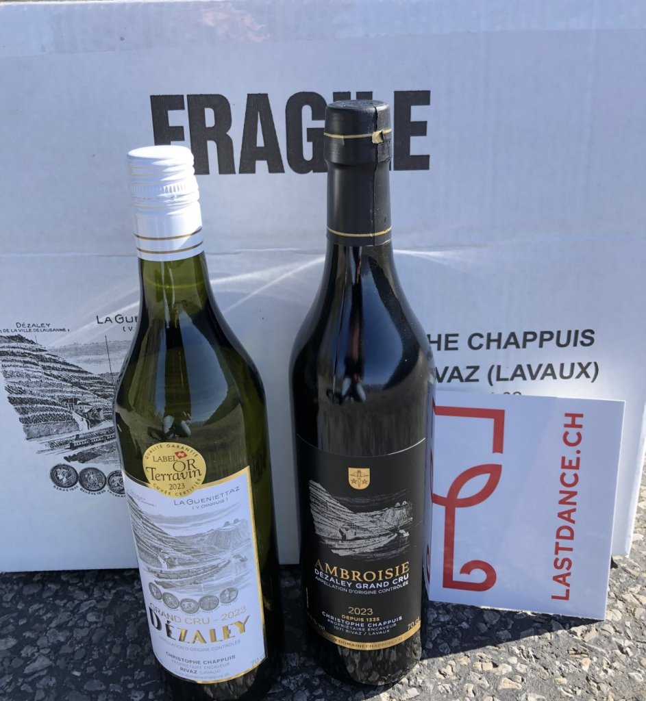 et vous propose un Carton Dégustation composé de 6 bouteilles de Dézaley Blanc La Gueniettaz & 6 bouteilles d'Ambroisie de l'excellent millésime 2023 du Domaine Chappuis à Rivaz.